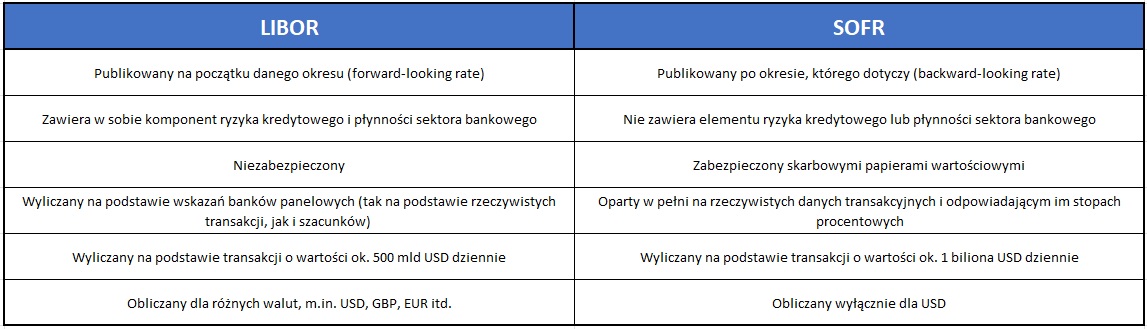 Tabela 1. Główne różnice pomiędzy wskaźnikiem LIBOR i SOFR