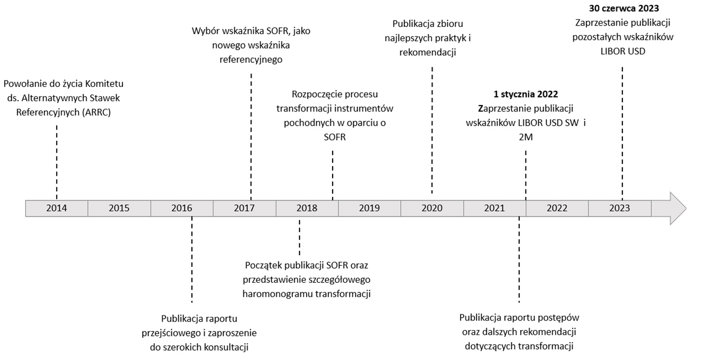 Ilustracja 1. Oś czasu procesu transformacji wskaźnika LIBOR USD na SOFR. Źródło: www.refinitiv.com